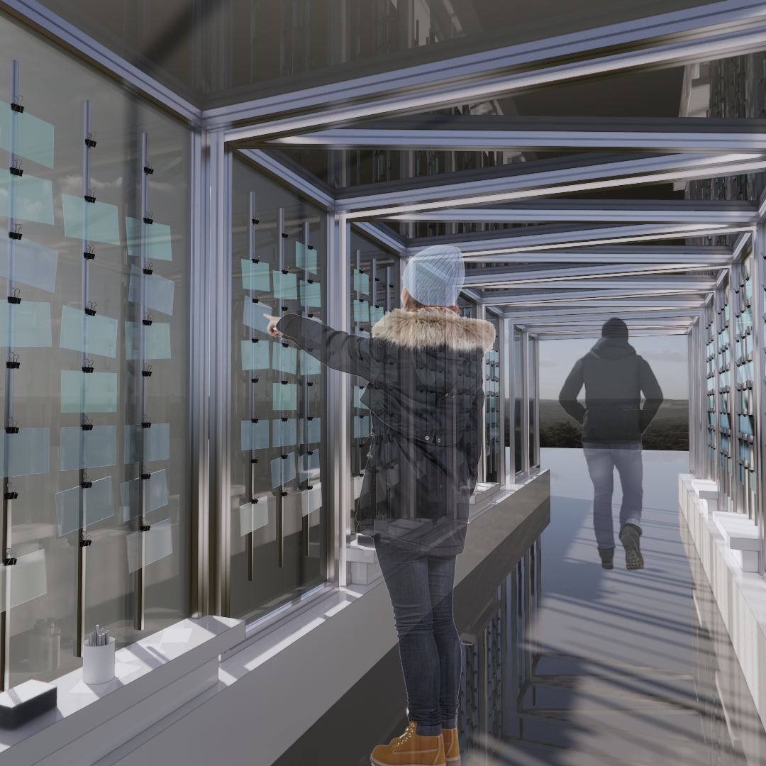 Nearly 45 years after the onset of the AIDS epidemic, there is still no cure. The ongoing nature of AIDS means that a memorial for it must address the past, present, and future. As a space for contemplation, the shanty reflects the natural landscape with opportunities to add your own tributes to those affected by HIV or other ongoing epidemics. The shanty is inspired by designs from the late architect, David Madson, whose thesis was published posthumously in 1998.